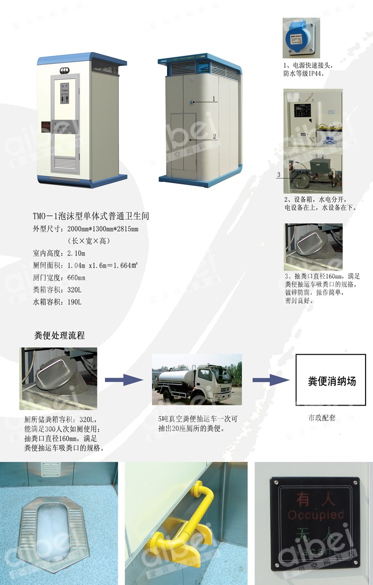 移动单体厕所占地面积小、挪动灵活、投资小,非常适合临时活动、体育场馆、无上下水的成熟街区,在成熟街区高密度分布,既能满足城市设施设置标准,又能满足百姓出行的需求。